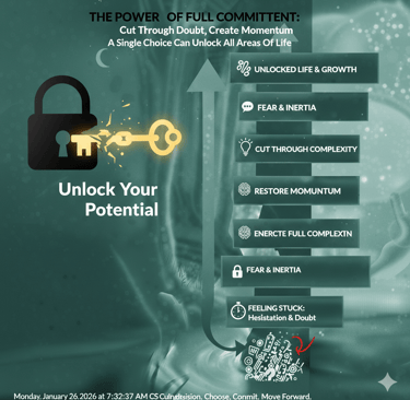 Feeling stuck often comes from hesitation, doubt, and staying in a holding pattern. This article explains how a single, full commitment can cut through complexity, restore momentum, and create forward movement across many areas of life.