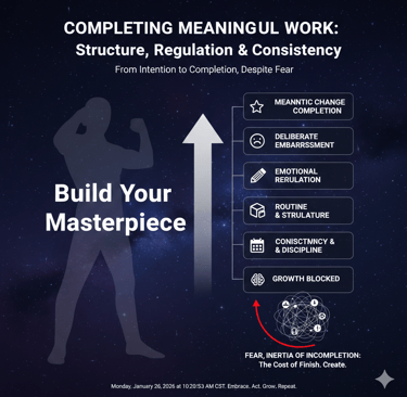 Completing meaningful work is less about talent and more about structure emotional regulation and consistency. This post breaks down the core practices that allow big important projects to move from intention to completion even when fear doubt and overwhelm show up.