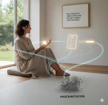 Real positivity doesn’t come from hype or hustle. It comes from removing friction, protecting energy, and making progress easier than procrastination.