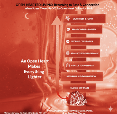 An open heart makes everything lighter. Relationships soften, work flows more easily, and overwhelm becomes manageable instead of paralyzing. This piece explores what it really means to live open-hearted and how to gently return to that state when stress, hurt, or exhaustion causes us to close off.