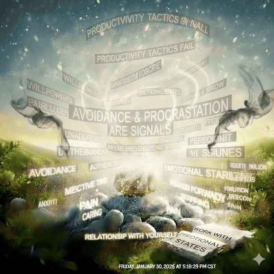 Avoidance and procrastination aren’t character flaws—they’re signals. This post explains why willpower and productivity tactics fail, and how unaddressed emotional states quietly drive avoidance. Learn how to work with the real cause so action becomes possible again.