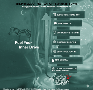 Motivation isn’t mysterious or magical. It follows simple, predictable principles similar to basic physics. This article explains how inertia, energy, fear, possibility, structure, and community interact—and how to use them intentionally to motivate yourself in a sustainable way.