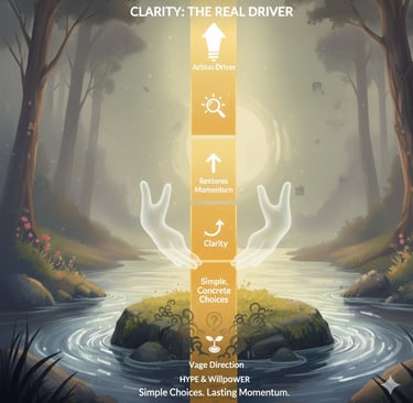 Motivation fades when direction is vague. This post explains why clarity is the real driver of action—and how making simple, concrete choices restores momentum without relying on willpower. Affirmation